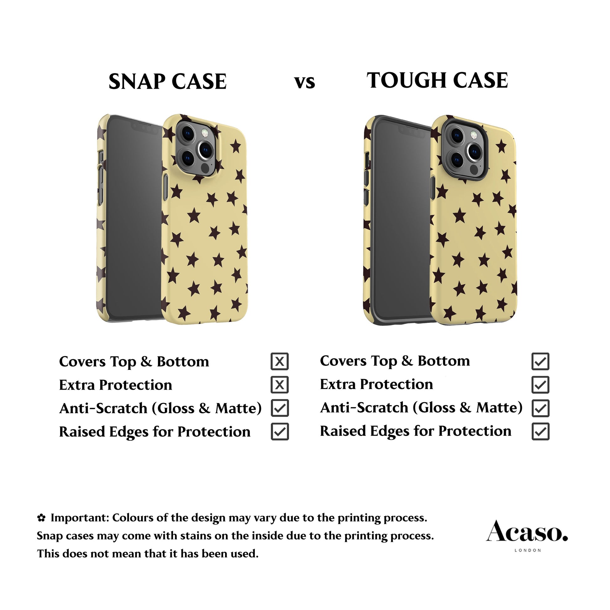 ⚠️ Important: Colours of the design may vary due to the printing process. Snap cases may come with small stains on the inside due to the printing process. This does not mean that it has been used.