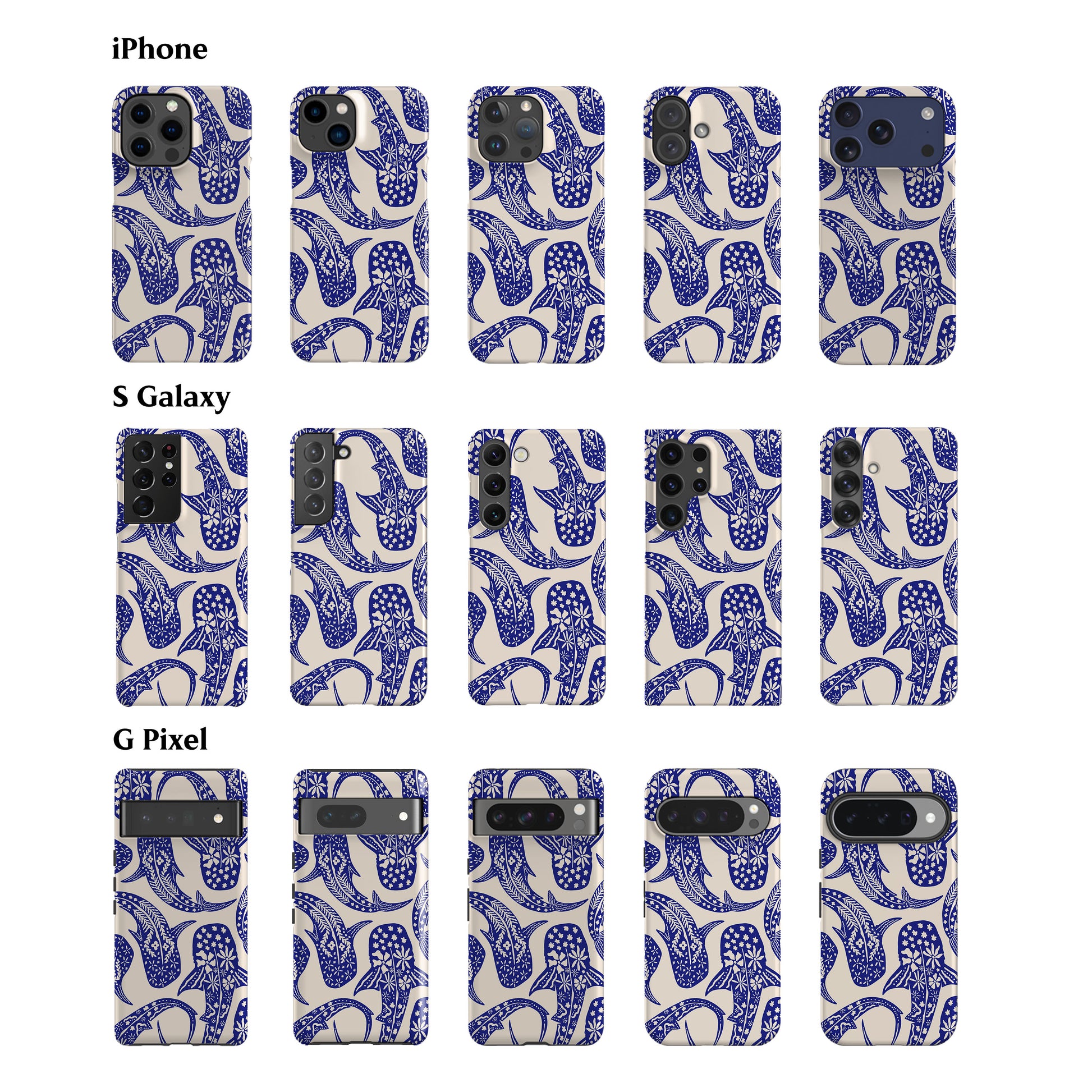 Floral Blue Shark Whale Phone Case