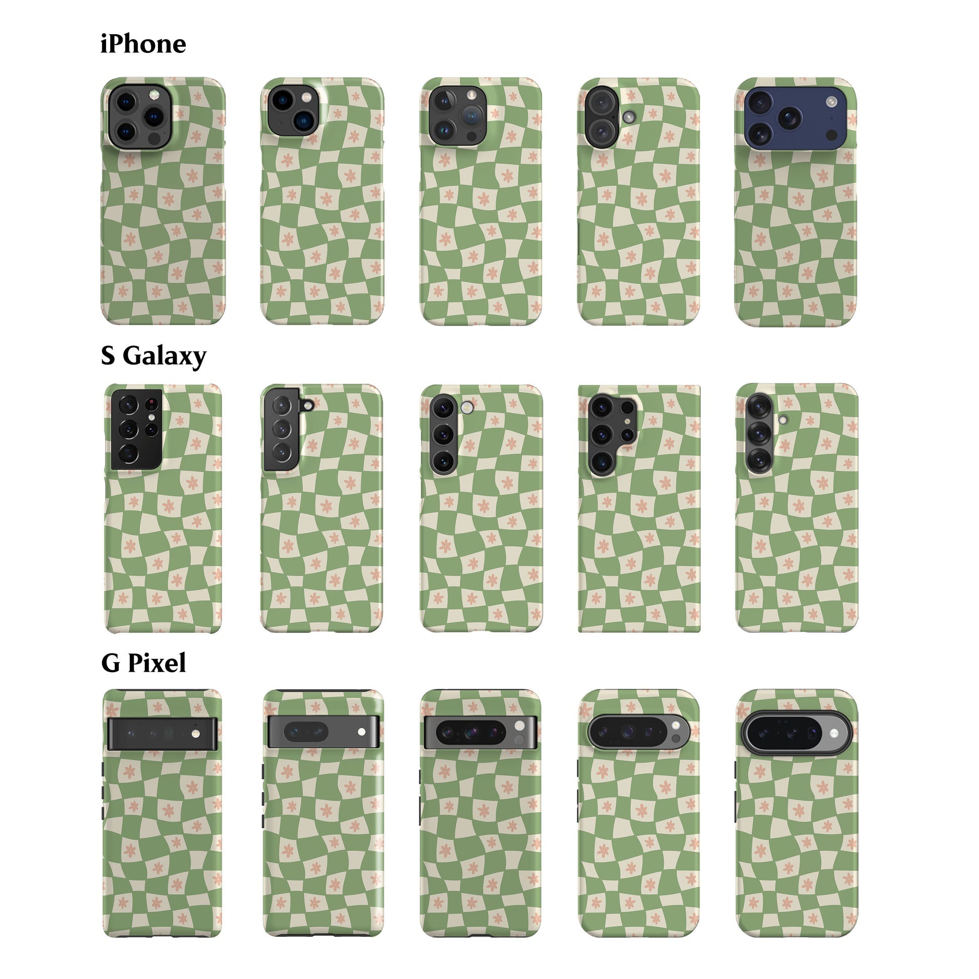 Flowers Checker Sage Phone Case