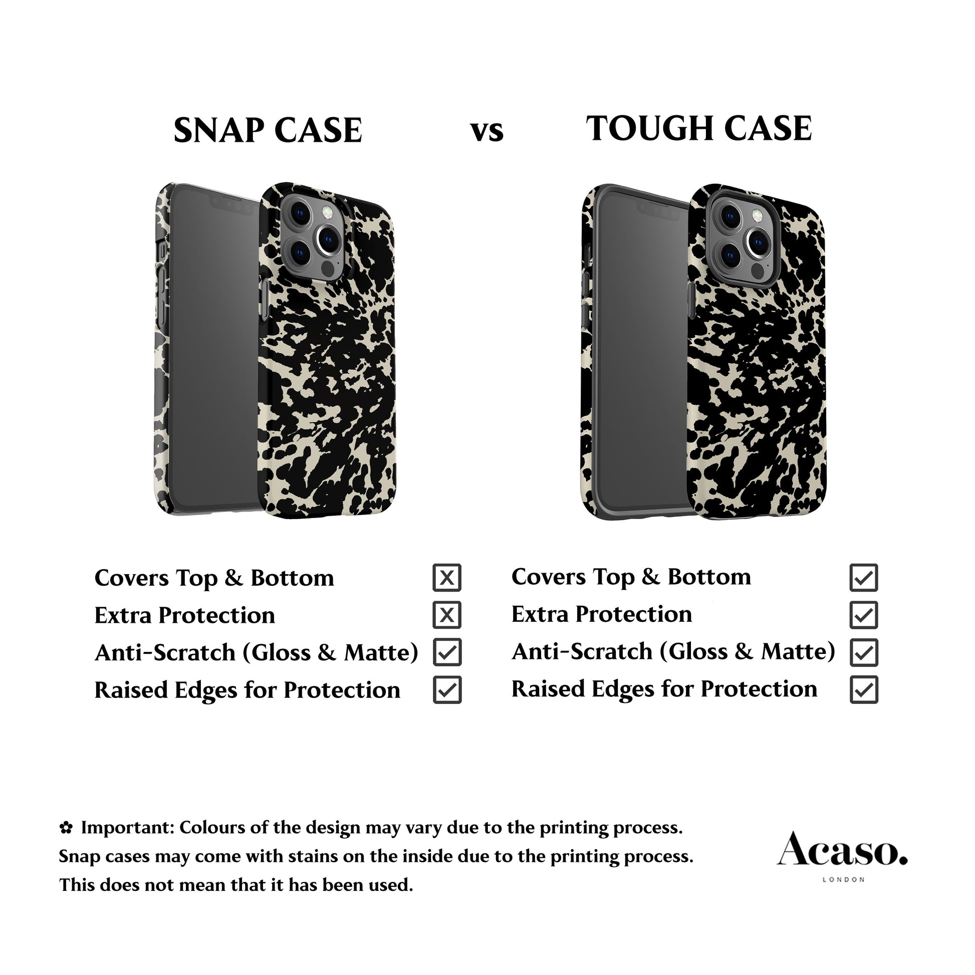 ⚠️ Important: Colours of the design may vary due to the printing process. Snap cases may come with small stains on the inside due to the printing process. This does not mean that it has been used.
