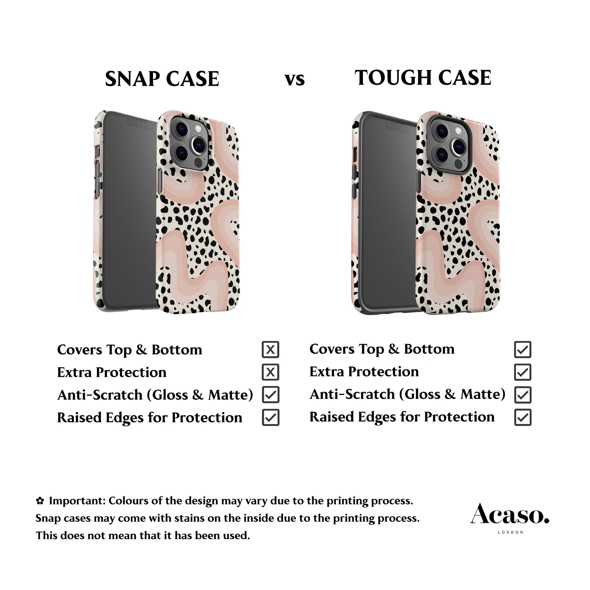 ⚠️ Important: Colours of the design may vary due to the printing process. Snap cases may come with small stains on the inside due to the printing process. This does not mean that it has been used.